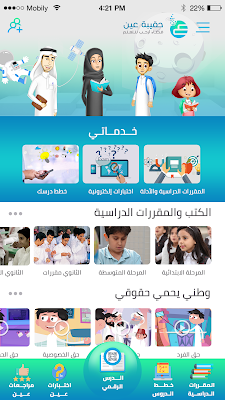- ويعمل على حفظ المعلومات الدراسية للمستفيد من هذا التطبيق، بحيث تمكنه من استعراض كتب الصف الدراسي الخاصة به، والكتب المحملة من قبل.
